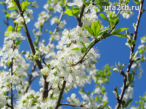 Деревья в саду посадили рядами. Самым большим и разветвистым деревом была абрикоса, а рядом с ней росла марабеля. Так они и запомнились мне эти два дерева в пышном цвету; цвет абрикосы с розоватым оттенком, а цвет марабели светло зелёный. Я любовалась ими и не могла отдать предпочтение ни одному из деревьев, какое красивей? Ещё в саду росли несколько груш, вишен, белые сливы и чернослива, две яблони и шелковица.
